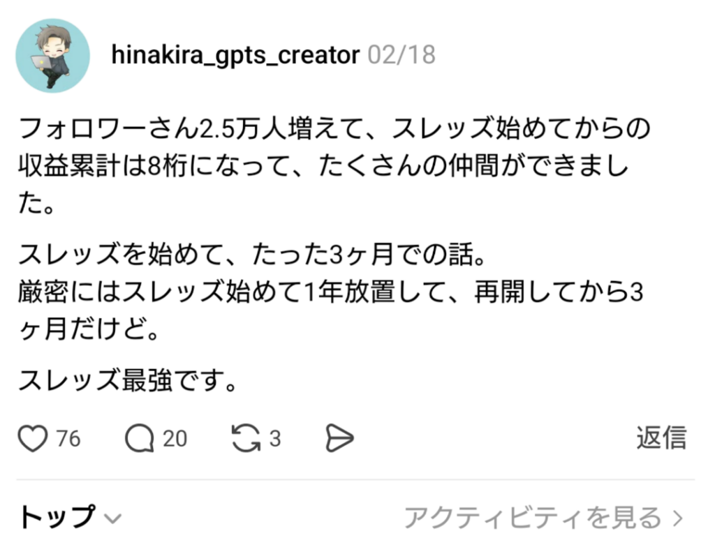 SNS(Threads)をはじめてから、〝たった3ヶ月〟での成果です。